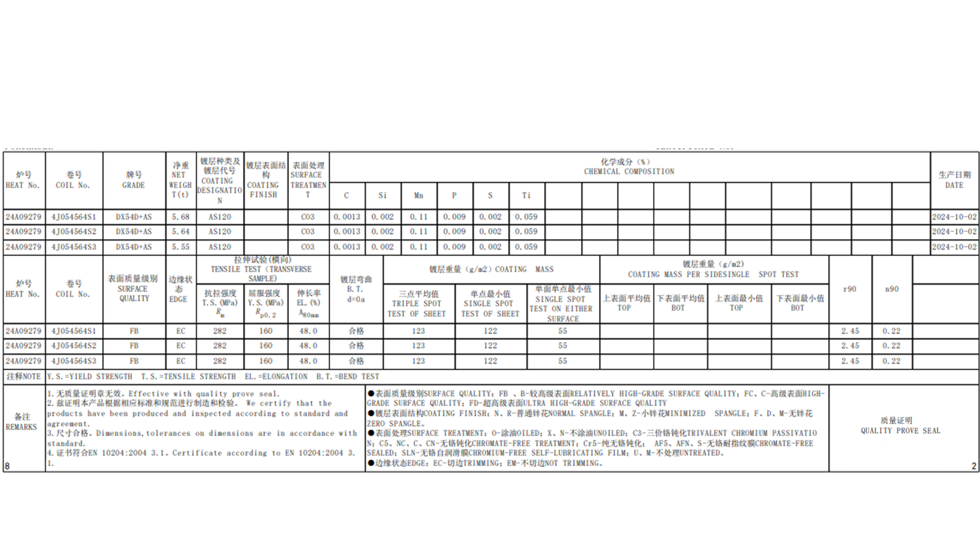 | DX53D+AS | 140-185 | 270-330 | ≥36 |